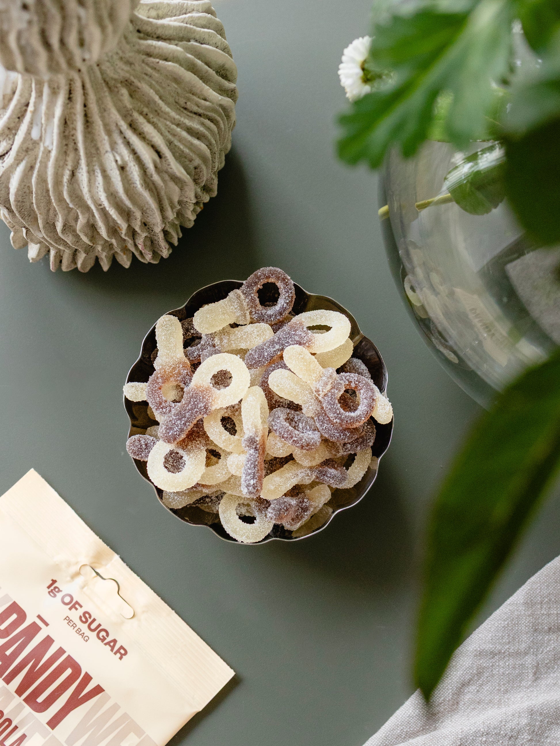 Made in Sweden by Pändy, these sour gummies bring a fizzy cola taste with just the right balance of sweet and sour. The texture is soft but with a satisfying bite, making them an easy favorite in any Pick & Mix. Made with non-GMO ingredients and natural colors.